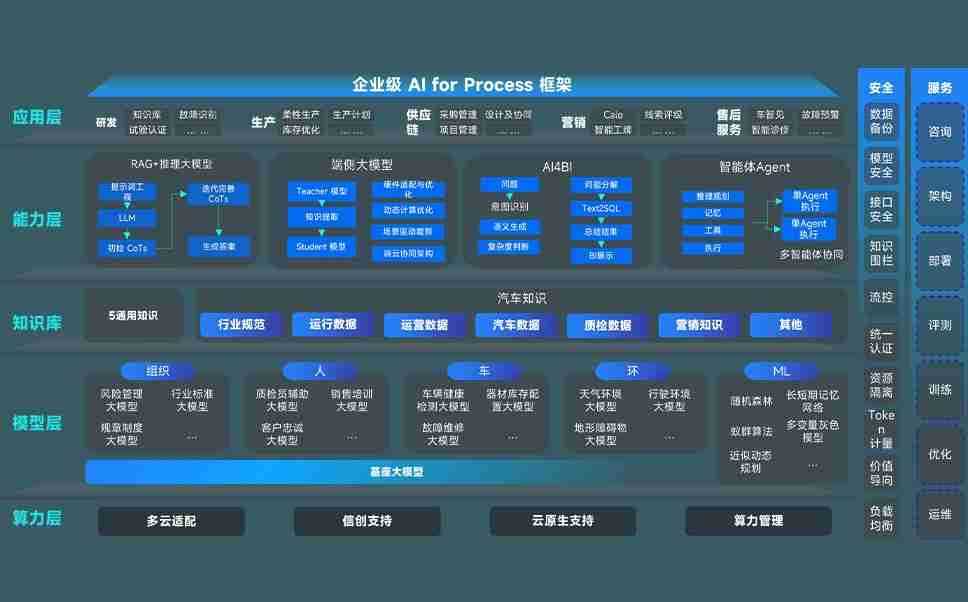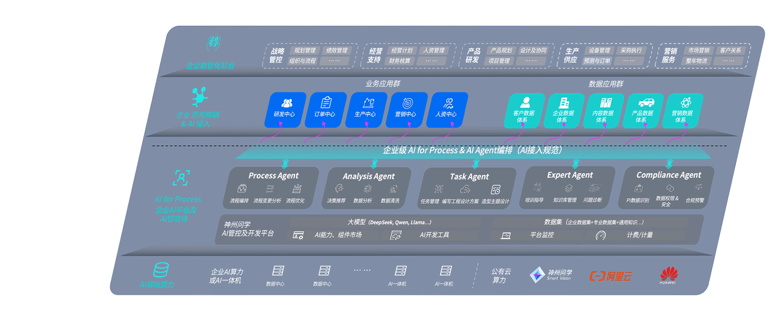 尊龙集团问学智车解决方案是一套基于AI技术的汽车行业智能化系统,,,,覆盖从底层算力到顶层AI应用的全栈方案。。方案由算力层、、、、模型层和应用层组成:算力层,,,,方案支持多种一体机配置,,,,具备云端灵活部署、、、、多云适配以及动态优化计算资源的能力;模型层,,,尊龙集团问学平台版提供了企业级AI应用一站式构建与管理平台,,,,支持基于后训练强化技术的汽车企业专属模型的训练、、、、评测和运营;应用层,,,,尊龙集团问学DeepSeek版提供包括超级员工、、、智能招采、、、、智能营销、、智能客服、、、、AI for BI等一系列解决方案,,可助力汽车行业实现数字化转型,,让管理更智能、、响应更敏捷。。。