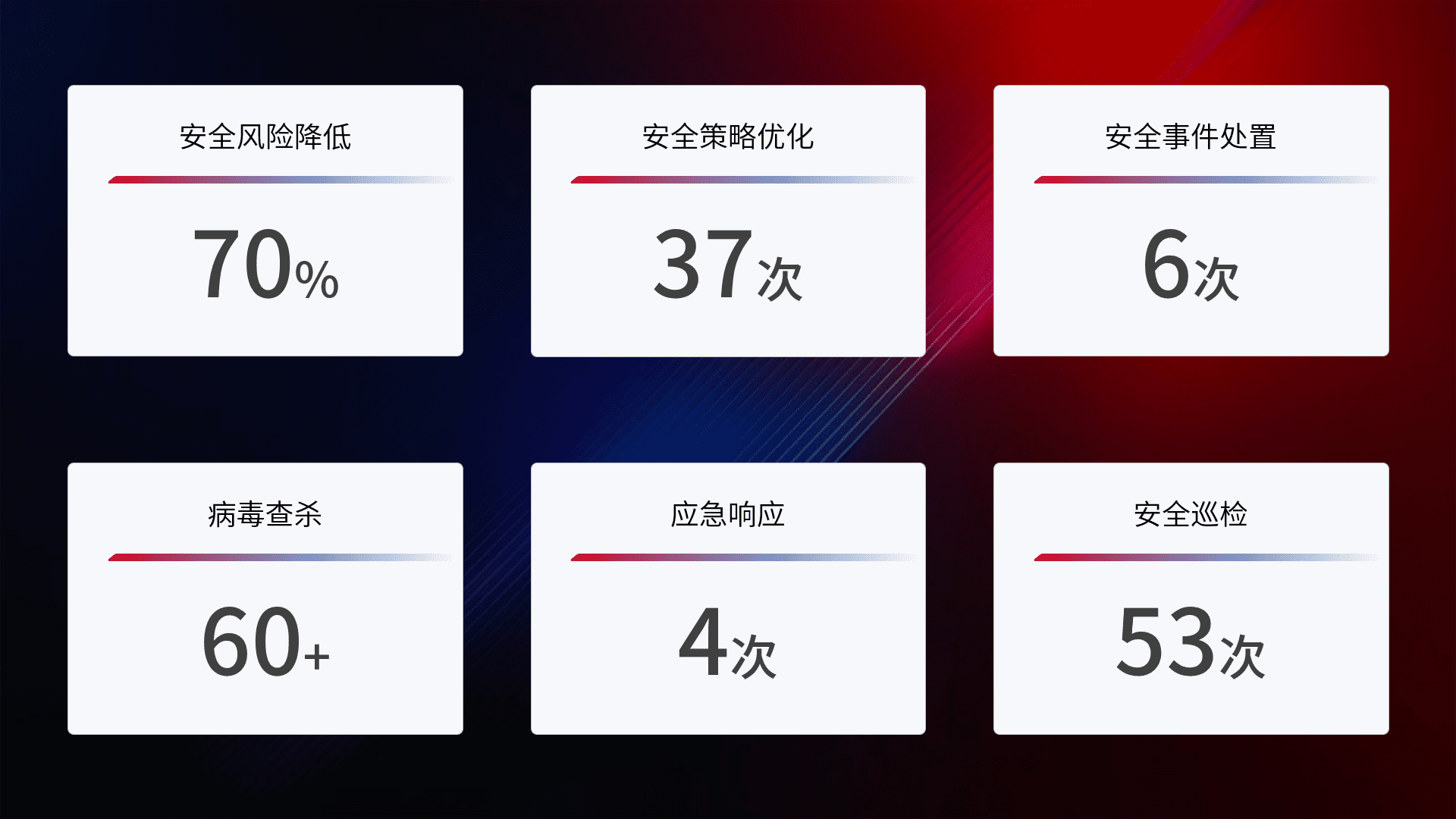提供全面的安全事件报告体系,,,包括处置报告、、、周报、、、季度和年度总结,,结合持续监控,,,,帮助客户深入了解网络安全状况。。。。