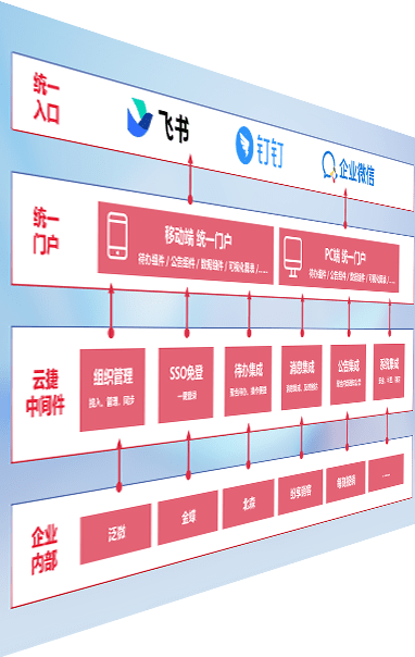 对协作平台提供支持服务,,支持企业应用与协作平台对接,,,包含组织同步、、消息集成、、、待办集成等。。。。支持目前主流的协作平台:钉钉、、、企微和飞书。。。。